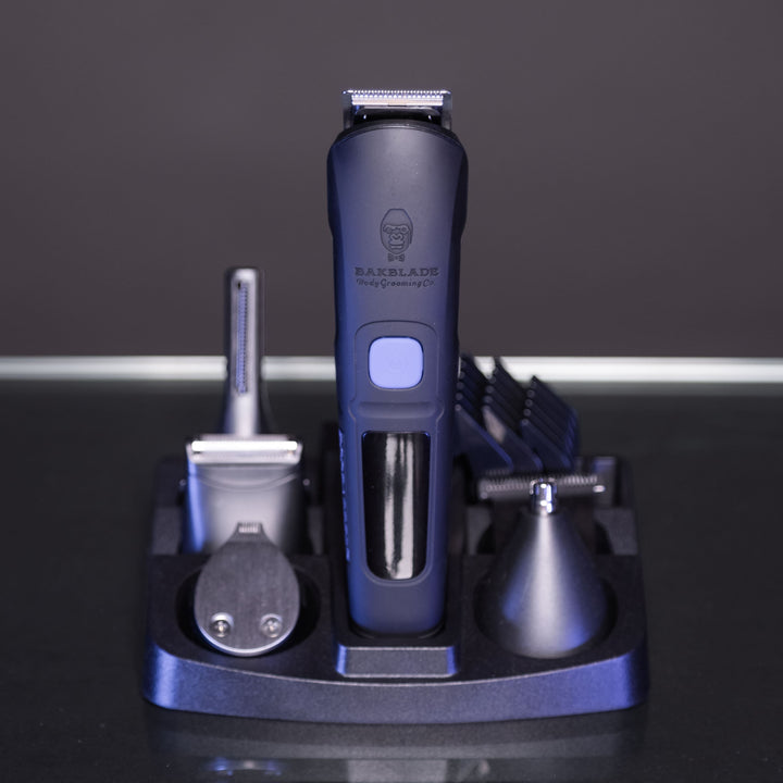 BakBlade's BodBarber full body grooming kit is the ultimate tool for all your grooming needs. From top to toe, this manscaping kit for men has got you covered. The kit includes over 11 attachments to help you stay sharp, tidy, and in control of your grooming game. Perfect for treating yourself or as a great body grooming gift for men.